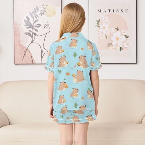 senya Cute Capybaras Swimming Q Satin Summer Pajama Sets Silk Short Sleeve Button Down Sleepwear 4