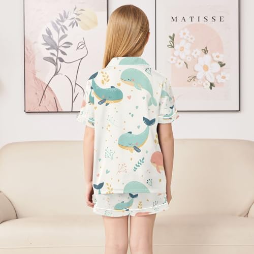 senya Cute Whale on Leaves Satin Summer Pajama Sets Silk Short Sleeve Button Down Sleepwear 2
