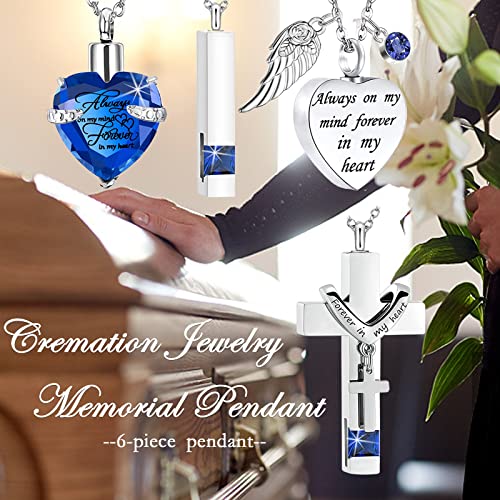 HOT ! Stainless Steel 6-Piece Set Urn Necklace for Ashes Men Women Pendant Cremation Heart Cross Cubic Urn Keepsake Locket Ashes Memorial Ashes Necklace (6Pcs - Purple)
