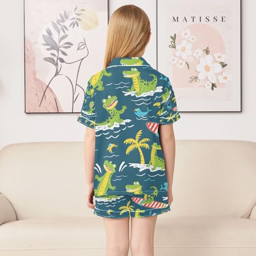 senya Crocodile Surfer Satin Summer Pajama Sets Silk Short Sleeve Button Down Sleepwear 2