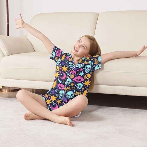 • 🌷 Size - Our cute satin pajama set suitable for 5-14 years old. Small=US 5-6 Years; Medium=US 7-8 Years; Large=US 9-10 Years; X-Large=US 11-12 Years; 2X-Large=US 13-14 Years. Please choose the size of button-down sleepwear according to the size chart details.