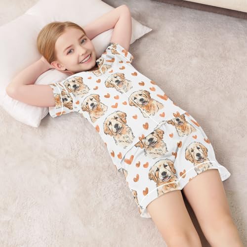 Golden Retriever Retriever Prints Summer Satin Pajama Set, Cute Button-Down Sleepwear Pj Set for Sleep Wears 1