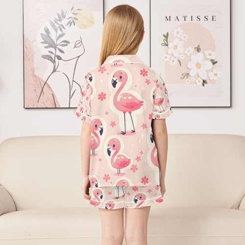 senya Cute Flamingo Pink Satin Summer Pajama Sets Silk Short Sleeve Button Down Sleepwear 2