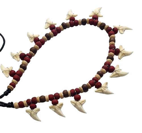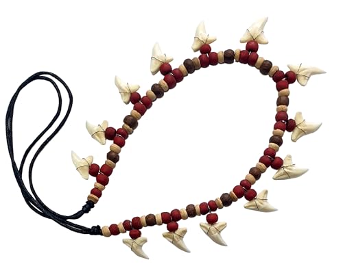 • This shark teeth necklace features 13 awesome genuine mako shark teeth held by attractive wooden beads on waxed cords. The length of the necklace is adjustable for your perfect fit from 18 to 30 inch by sliding the slip knots of the waxed cords. A cool looking Ocean-Inspired beach surfer Shark Tooth Necklace for Men Women.