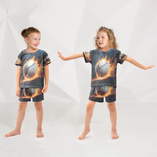 ALAZA Baseball Flame Sky Blue Pajamas Set Short Sleeve Cotton Sleepwear Summer Pjs 2 Piece 5-14Y 2