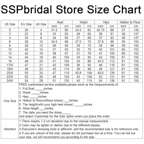 • Size:Please refer to the left Size Chart before purchasing, If the standard size doesn't match you, please choose the similar size close to you,If you want a custom made dress,please send us your measurements and leave your specific measurements after placing order.