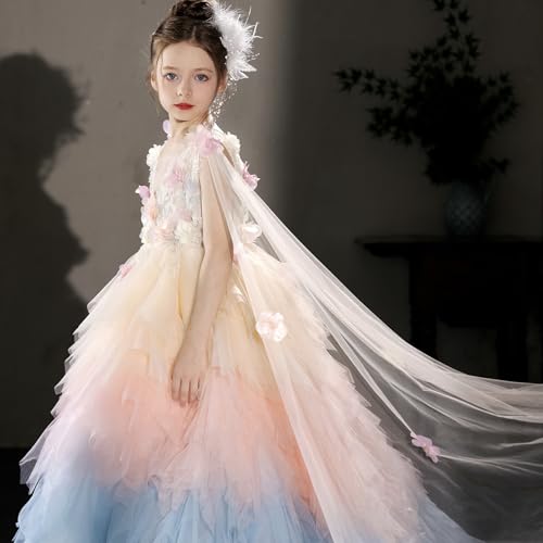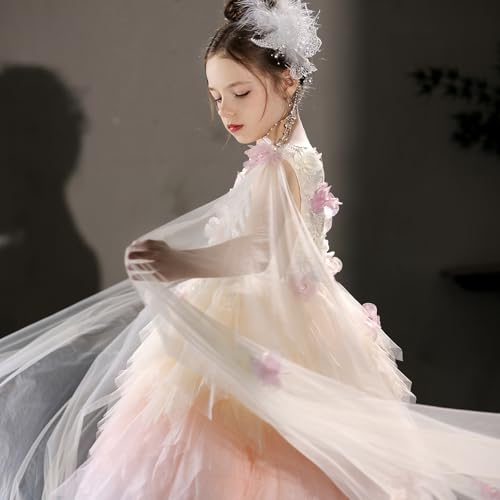 Pageant Dresses for Girl Chiffon Sleeveless Handmade Trailing 3D Anti Floral Evening Gown 6