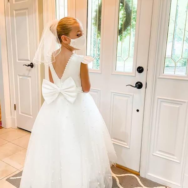 MCieloLuna 2025 Flower Girl Dress Cap Sleeve Pearls First Communion Dresses for Girls Toddler Tulle Wedding Party Gown 4