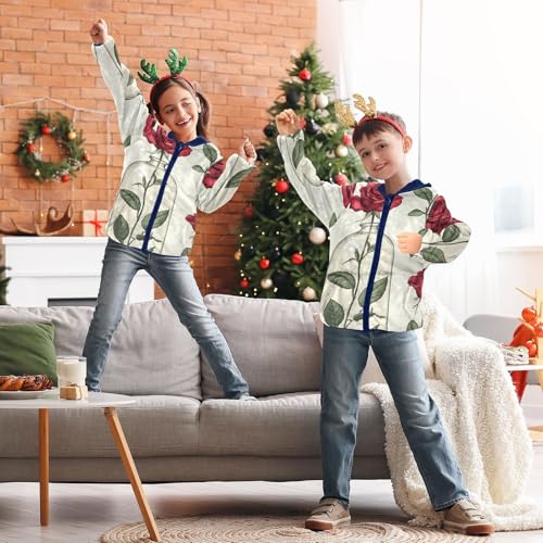 HOT ! Red Eternal Flower Art Girls Fleece Jacket Girls Fall Jacket Girls Zip Up Hoodie Girls Sherpa Jacket 2-10T