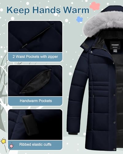 Girl's Winter Coats Kids Long Puffer Jacket Heavy Parka Warm Fleece Ski Outerwear with Removable Fur Hood 4