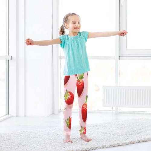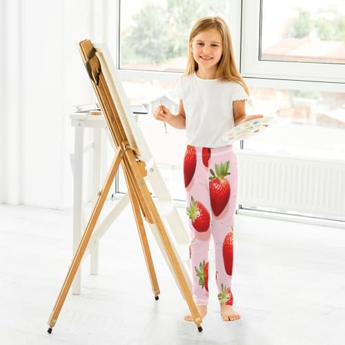 Bolaz Toddler Girls Leggings Printed Yoga Pants Leggings Strawberry Pink Background for Kids 4