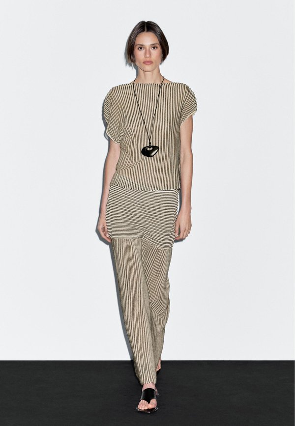 HOT ! PLEATED WITH FLECKED DETAIL - Print T-shirt - beige