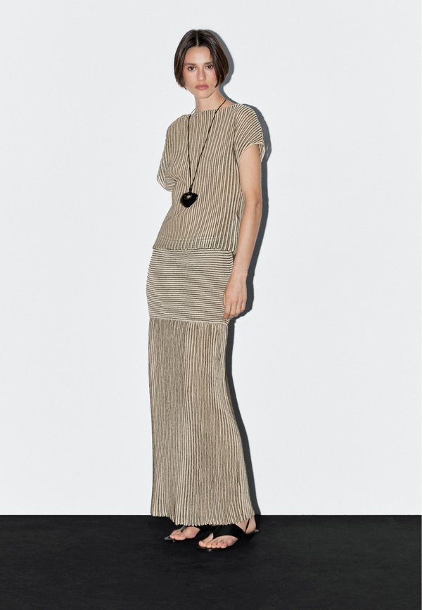More information about PLEATED WITH FLECKED DETAIL - Print T-shirt - beige