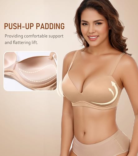 DotVol Women's Push Up Wireless Comfortable Padded Plunge No Underwire Everyday Bra 5