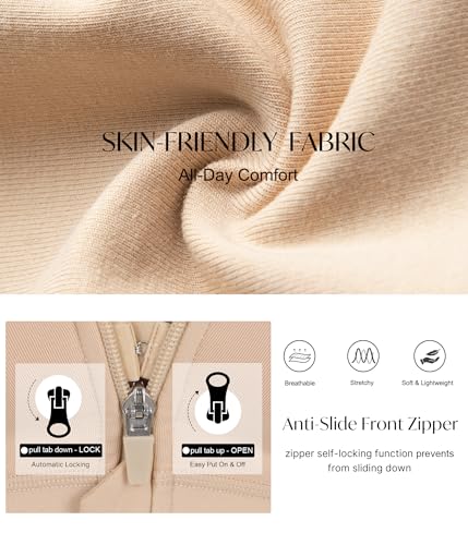 • ZIP FRONT COMFORT BRA: Our front closure bra with sturdy zipper is easy to wear, plus with hook and eye closure inside to secure zipped. This front zipper bra with elastic, breathable and lightweight fabric gives you a soft, smooth, buttery-soft feel against the skin to keep you cool and comfortable all day.