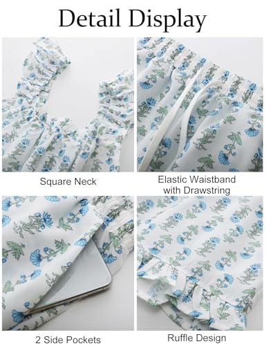 • Pajama Top: Ruffle cami top features beautiful flower print design with an elastic square neckline, making this pj set more cute and unique. Extra comfy and soft pajama set for women keeps you cool during hot nights for bedtime