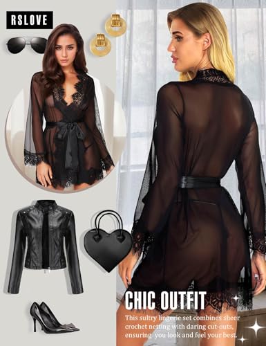 RSLOVE Women Lace Kimono Robe Sexy Babydoll Lingerie Mesh Cover Up Bridal Lingerie 5