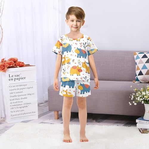 ALAZA Funny Hippo Leaves Pajamas Short Sleeve 2 Piece Sleepwear Top and Bottom Pajama Set Unisex 6
