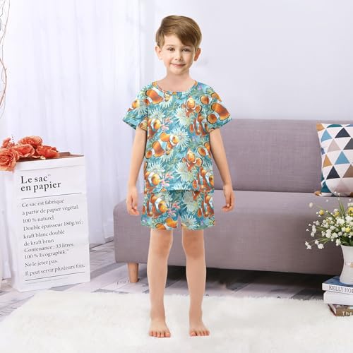 ALAZA Clownfish Coral Reef Ocean Pajamas Short Sleeve 2 Piece Sleepwear Top and Bottom Pajama Set Unisex 3