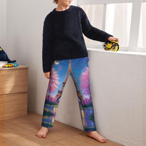 HOT ! Pajama Pants Pajama Bottoms with Elastic Waistband Sleepwear Lounge Pants, Eiffel Tower Cherry Blossom Moon
