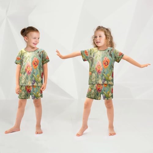 senya Short Sleeve Pajamas Sets Summer Cotton Sleepwear Hummingbird Peony Lily 1