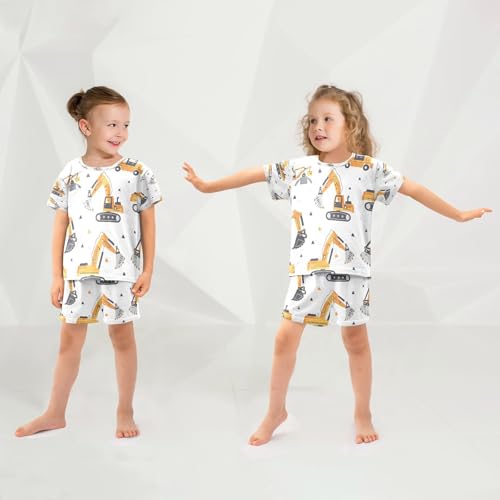 senya Short Sleeve Pajamas Sets Summer Cotton Sleepwear Yellow Excavating Machinery 1