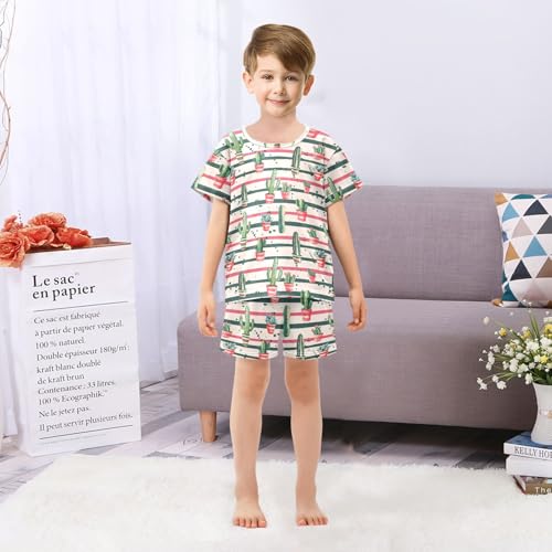 ALAZA Cactus Colorful Stripes Pajama Set Short Sleeve Sleepwear Soft Lounge Nightwear 1