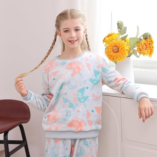 V.&GRIN Girls Fleece Pajamas, Cute Soft Warm Fuzzy Winter Longsleeve Sleepwear Set for Teens Size 7-16 Years 6