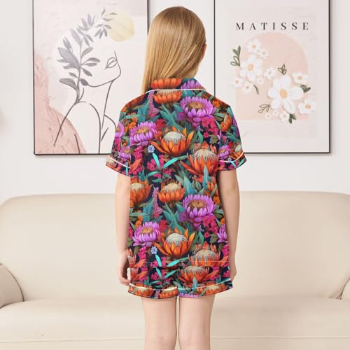 senya Budding Flower Satin Summer Pajama Sets Silk Short Sleeve Button Down Sleepwear 1