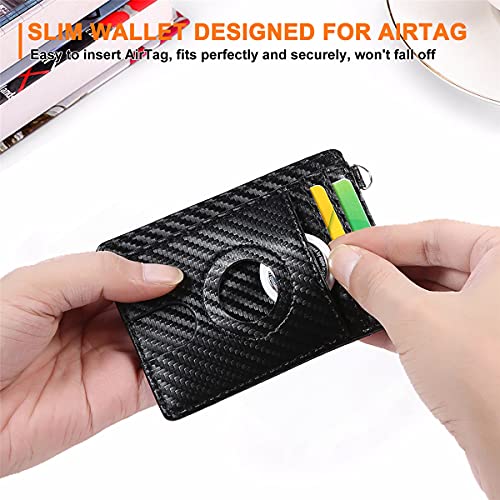HOT ! Slim Minimalist Airtag Wallet for Men Leather RFID Blocking Credit Card Organizer with Apple AirTag Case Holder Carbon Fiber Black