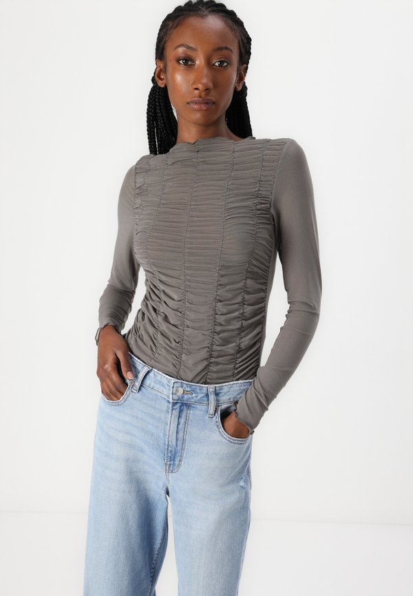 HOT ! NMJUDITH DRAPED - Long sleeved top - charcoal gray