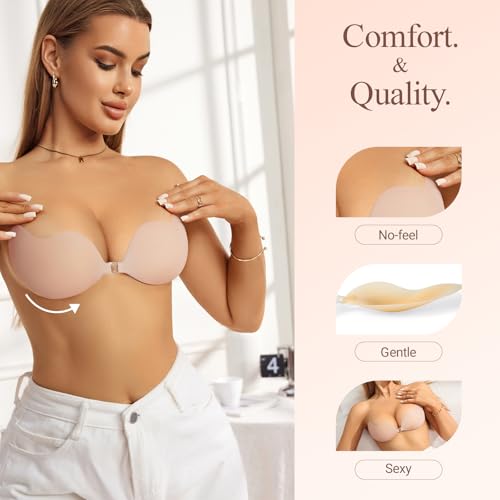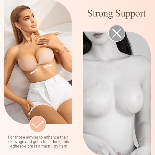 • DRAMATIC LIFT & DEEP V CLEAVAGE: Experience a transformation, not just support. Our adhesive bra is engineered with a powerful front clasp and contoured cups to provide an impressive push-up effect, instantly creating a fuller, more defined, and dramatic deep V cleavage. It's the ultimate secret weapon for your most daring plunge dresses and low-cut tops
