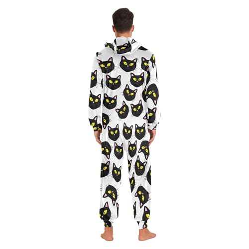 Burbuja Big Black Cat Faces Adult Onesie Pajamas Fleece Onesie Sleepwear Homewear for Women Men 3