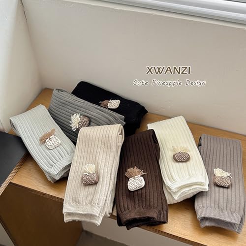 Girls Tights Ribbed Lines Crew Socks Solid Cartoon Thickened Casual Girls Leggings One Pack 4