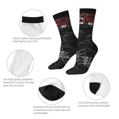 HOT ! Eat Sleep Repeat Unisex Cushion Crew Sock Soft Casual Mid-Calf Socks