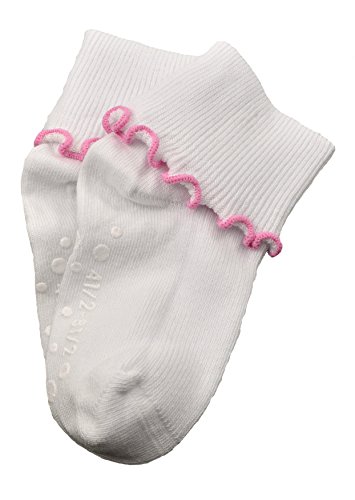 Sierra Socks Girls Cotton Lettuce Ripple Edge Turn Cuff Seamless Toe Non Skid 3 Pair Pack 5