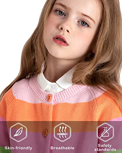 BOBOYOYO Girls Cute Cardigan 100% Cotton Rainbow Kids Cardigan Sweater Button up Striped Knit Cardigan Children for 5-12 Y 4