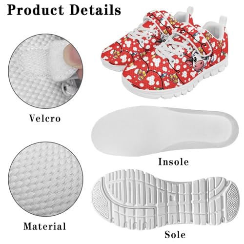 More information about Boys Girls Shoes for Little Kids/Big Kids Machine Washable Lightweight Comfy Athletic Running Shoes Kids Sneakers Light Grey Christmas Cow Pattern White Sole