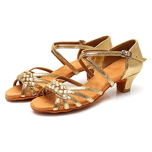 YKXLM Girls Latin Dance Shoes Kids Low Heels Tango Salsa Ballroom Practice Dance Shoes, 1208,Gold,13.5 M Little Kid 6