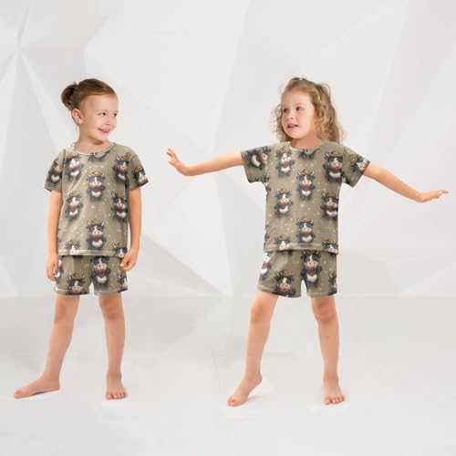 Pajama Short Sets Cow Pattern with Hats Soft Cotton Summer Sleepwear 2 Piece PJS Size 5-14T 1