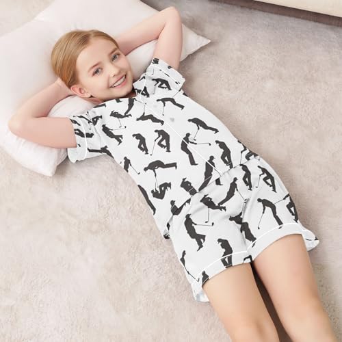 ALAZA Black Ice Hockey Player White Satin Pajamas Set Short Sleeve Button Down Sleepwear Summer Pjs 2 Piece 7
