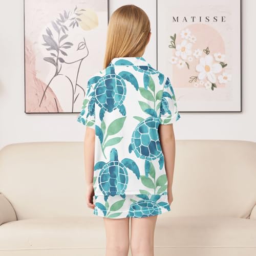 senya Green Turtle with Grass Satin Summer Pajama Sets Silk Short Sleeve Button Down Sleepwear 6