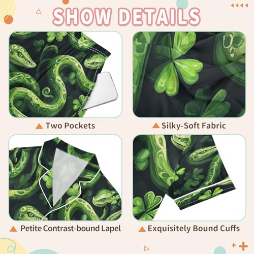 Satin Pajama Sets Short Sleeve Green Snakes Pattern Button Down Silky Nightwear 2 Piece PJS 5-14Y 4