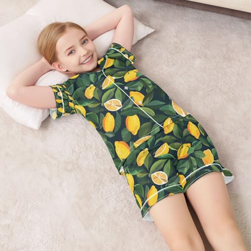 senya Background with Many Lemons Satin Summer Pajama Sets Silk Short Sleeve Button Down Sleepwear 3