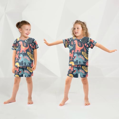 senya Short Sleeve Pajamas Sets Summer Cotton Sleepwear Dinosaur and Grass 2