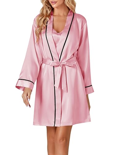 Vrtige Women's 3pcs Satin Pajamas Set Cami Top and Shorts Sleepwear PJs Set with Robe 3
