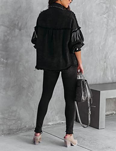 More information about Daacee Oversized Fringe Denim Jacket for Women Frayed Sparkly Tassel Jean Shacket Cowgirl Western Country Concert Outfits
