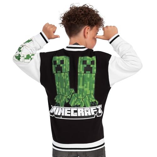 • Official Minecraft Merch: With a bold Minecraft logo embroidered in white and a sleeve full of Creeper faces, this gaming jacket for boys is packed with fun and it’s officially licensed Minecraft merchandise