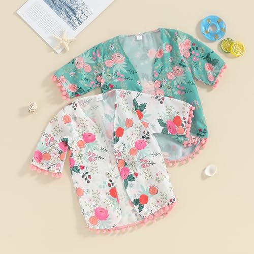• Feature: Toddler girl swim cover up, middle sleeve, open front, boho floral print, balls tassels, loose fit, pull-on closure, the flowy top is easy to put on and take off.