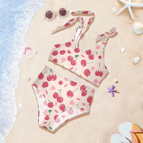 KLL Red Lips Cherry Girl 2 Piece Bikini Sets Quick-Dry Swimsuits Swimming Suits Adjustable Shoulder Strap 2
